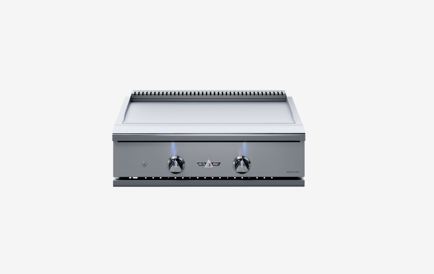 Extremely versatile Teppanyaki griddle brings commercial grade cooking to your outdoor kitchen. Two stainless steel burners produce a total of 37,000 BTUs and the solid griddle surface. From pancakes in the morning to stir-fried vegetables at night, you’ll have plenty of reasons to head outside and cook something on the griddle.
