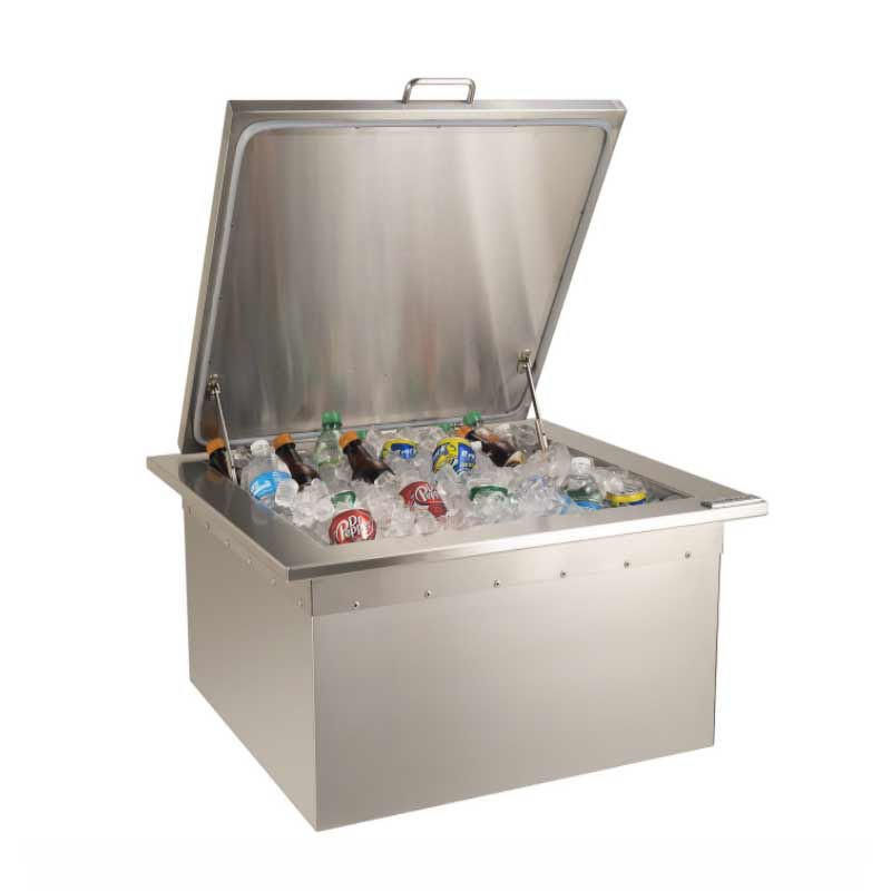Use like an ice cooler in your grill island to keep soda, beer or other beverages cold and frosty. Includes handy drain kit and hinged removable insulated lid.
