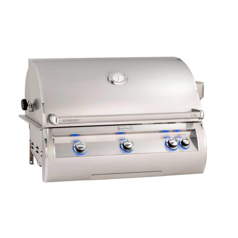 When only the best will do, our top of the line Fire Magic Echelon grill combines the ultimate in performance, beauty and innovation.  With sleek lines, a unique contoured face and state of the art features such as hot surface ignition, blue back lit knobs, and an optional Magic View Window.  Echelon Diamond defines luxury in grilling.