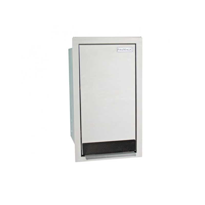 Constructed of stainless steel with a hands-free foot lever, the door easily slides open to reveal a 10.5 gallon trash can. Fully enclosed.