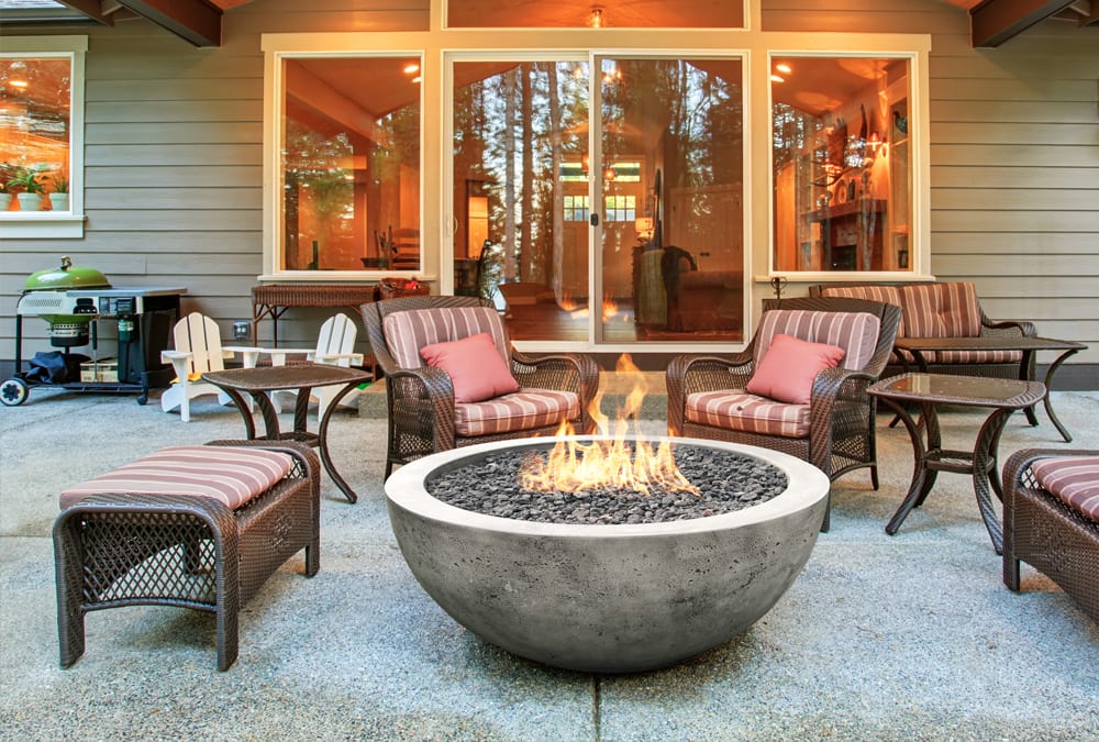 The fire pit comes complete with two 27lbs. bags of ¾” lava rock. The naturally occurring volcanic rock creates a stunning contrast to the beautiful flames of any gas fire feature while the lava rock is heat resistant.