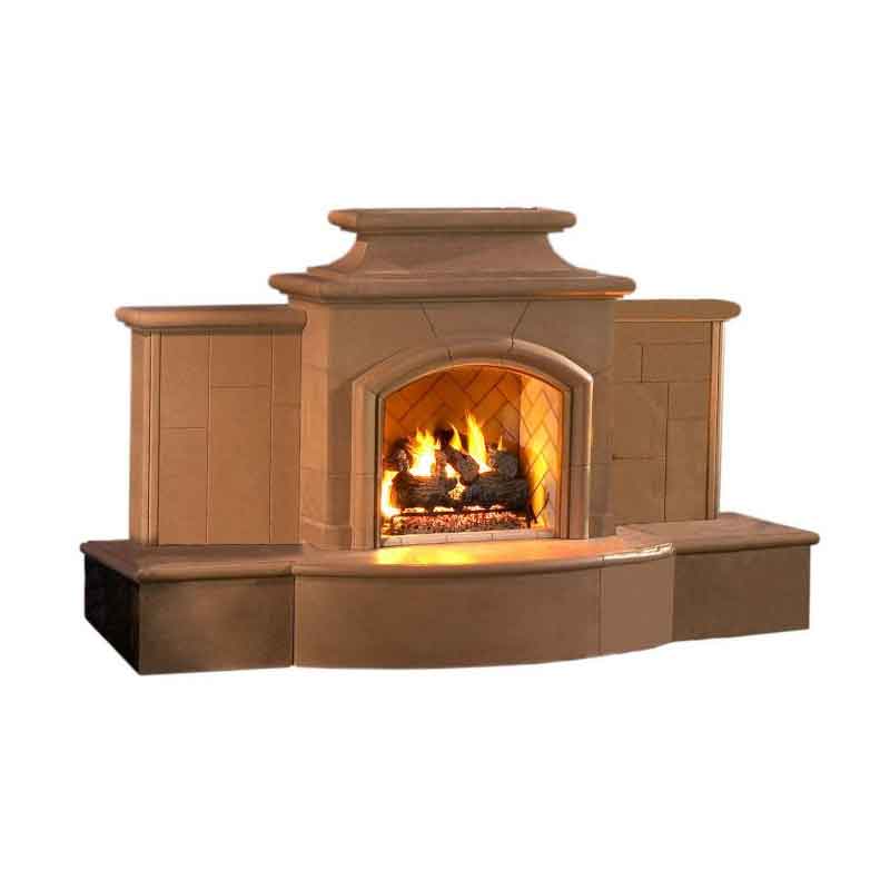 This full-sized classic outdoor fireplace provides a warm environment for friends and family to spend an evening together. The Grand Series Fireplaces incorporate wall extension panels to expand upon the body of the fireplace to create many new decorating opportunities while also providing a beautiful separation to the world behind the fireplace.