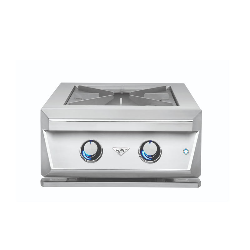 TURN UP THE HEAT. Our incomparable oversized, cast brass, 2-ring Power Burner – rated at 70,000 BTUs – makes all other residential burners jealous with heat envy. We construct the reversible commercial cooking grate on Model TEPB24HG-C from 8 mm stainless steel welded plates. This accessory should star in every outdoor kitchen.