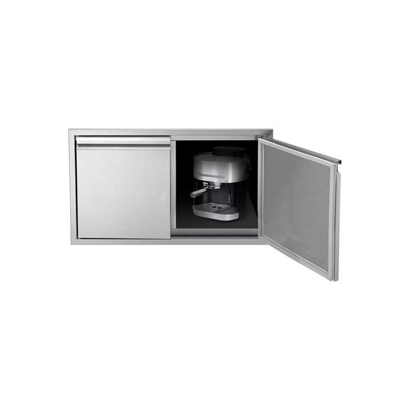 HIGH AND DRY. These smartly-designed, weather-safe dry storage cabinets seal snugly to ensure that contents are protected from exposure to the elements. The extra-deep interior with fixed shelves and full extension drawers provides generous space and storage flexibility. Must-have storage for your outdoor kitchen.